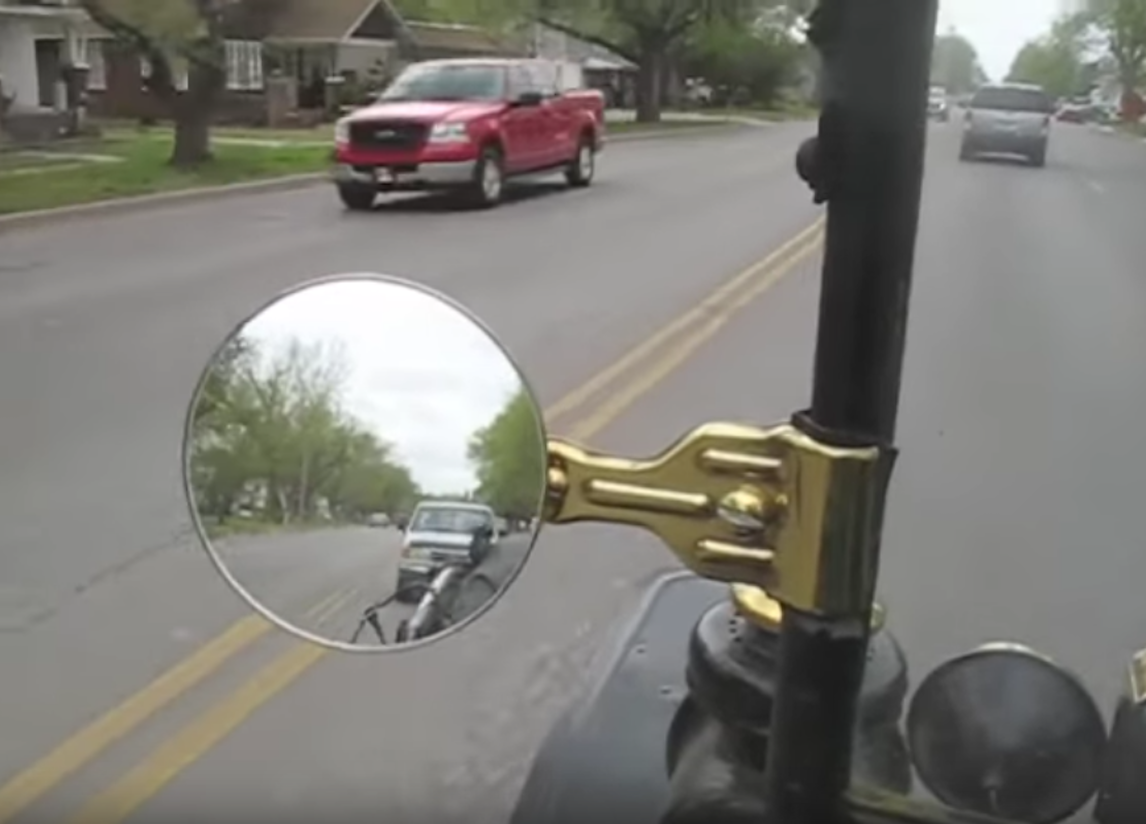 The vehicle behind the Model T will be using "adaptive cruise control," to increase or lower its speed depending on the traffic, and also the speed of the car directly in front of it. The car does this by using a forward-facing radar system. Those with AI, "Artificial Intelligence, will be able to pass each other when its safe to do so. This without AI will cruse at Model T speeds until the driver wakes up