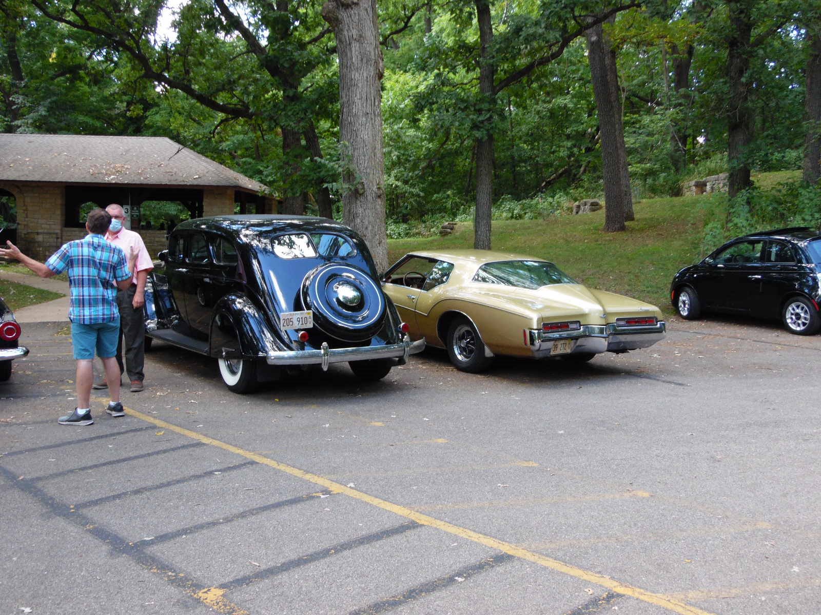Everybody is familiar with Pikes Peak in Colorado. For those of you who think Illinois is flat as a pancake, I want you to know, here in Kane County, IL., we have our vary own "Johnson's Mound" which is the highest point in Kane Co. and rises to an astounding elevation of 867 feet above sea level! This is about 200 feet above the surrounding corn fields, so it is certainly a site to behold! So take that, Colorado! On a clear day you can see all the way to DeKalb County. Well you could if there weren't so gosh darn many trees in the way. At any rate, this summer a group of my car crazed friends of all persuasions, have gotten together bi-weekly at the picnic shelter at the top of Johnson's Mound for a "Social Distancing - Self Picnic". On the first picnic I neglected to make sure my low band was properly adjusted, and so I need a little "help" getting to the top. Here are some photos from past picnics. My T is the one with the rope attached to the front axle. Most of the cars that show up are from a different decade. If you ask the man who owns the blue Packard, he will tell you how he purchased the car at 14 years old with savings from his paper route. He gave $700 dollars for it, which was the market rate at the time.