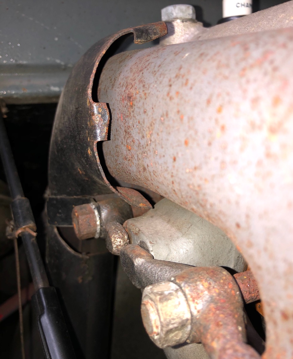 The tangs on the stove over the exhaust manifold are trimmed away too, to get the stove close to the manifold for clearance of the later style carb adj. rod. The tangs don't hit the metal manifold to prevent squeaks , which are rampant every where else on my touring!