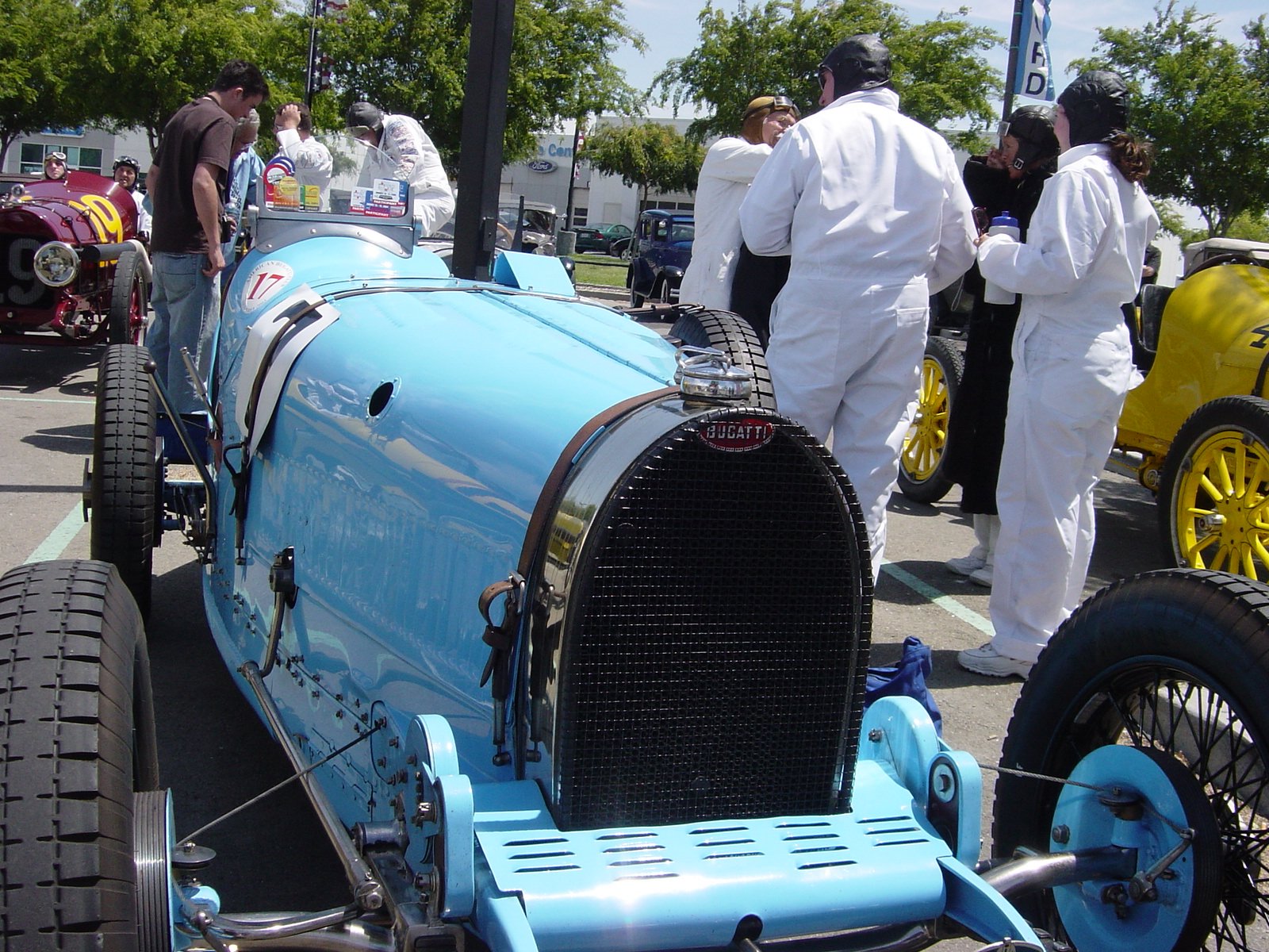 Here is a picture of an authentic Bugatti that ran in the Santa Clara Valley Endurance Run. It has a lot of features. It was running an in-line 8 cylinder with over-head cams.