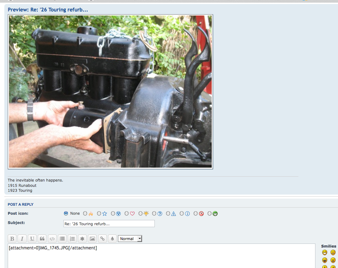 - * REQUIRED* Type and Year of Model Ts owned: 1923 touring and a few projects