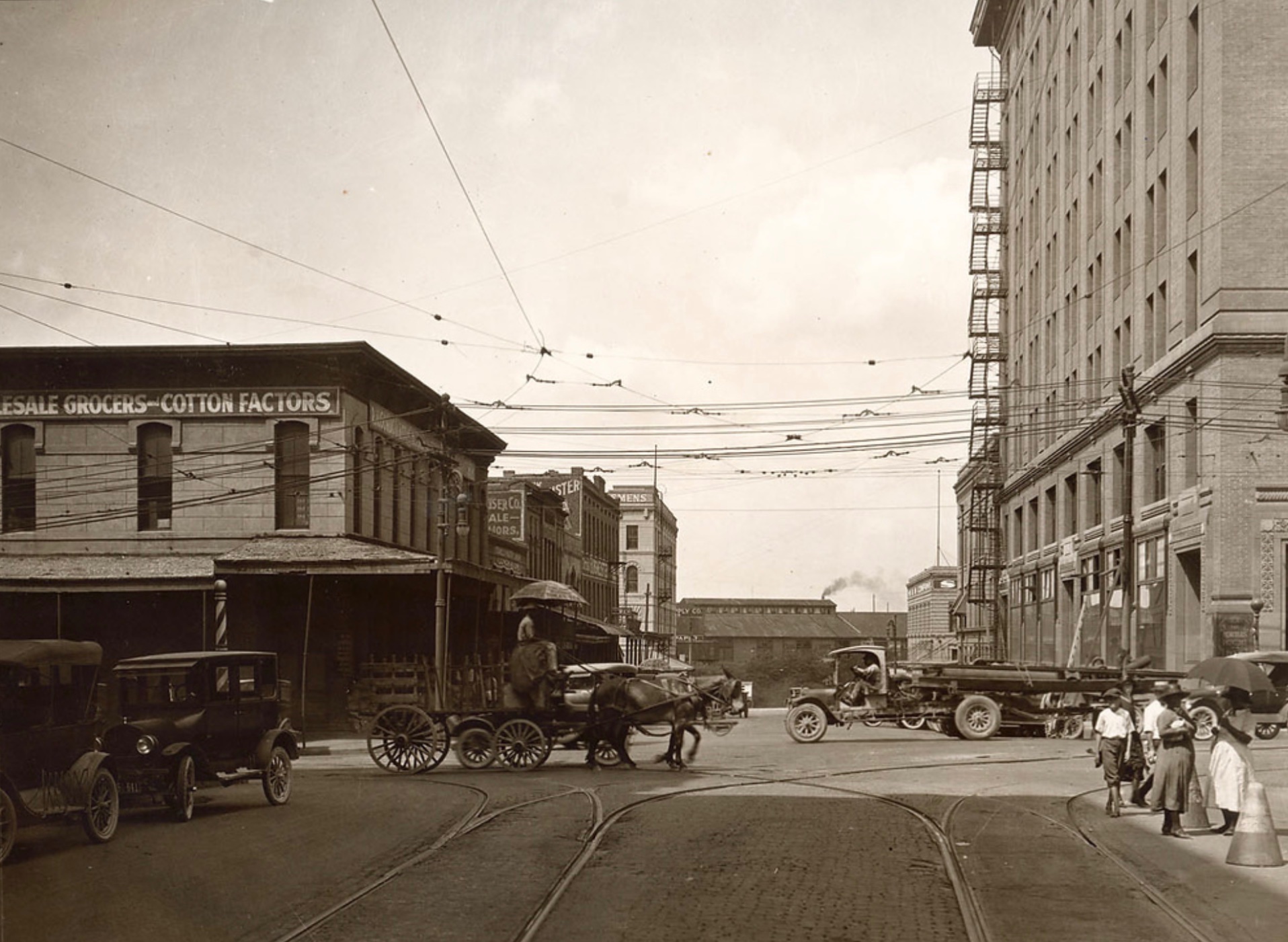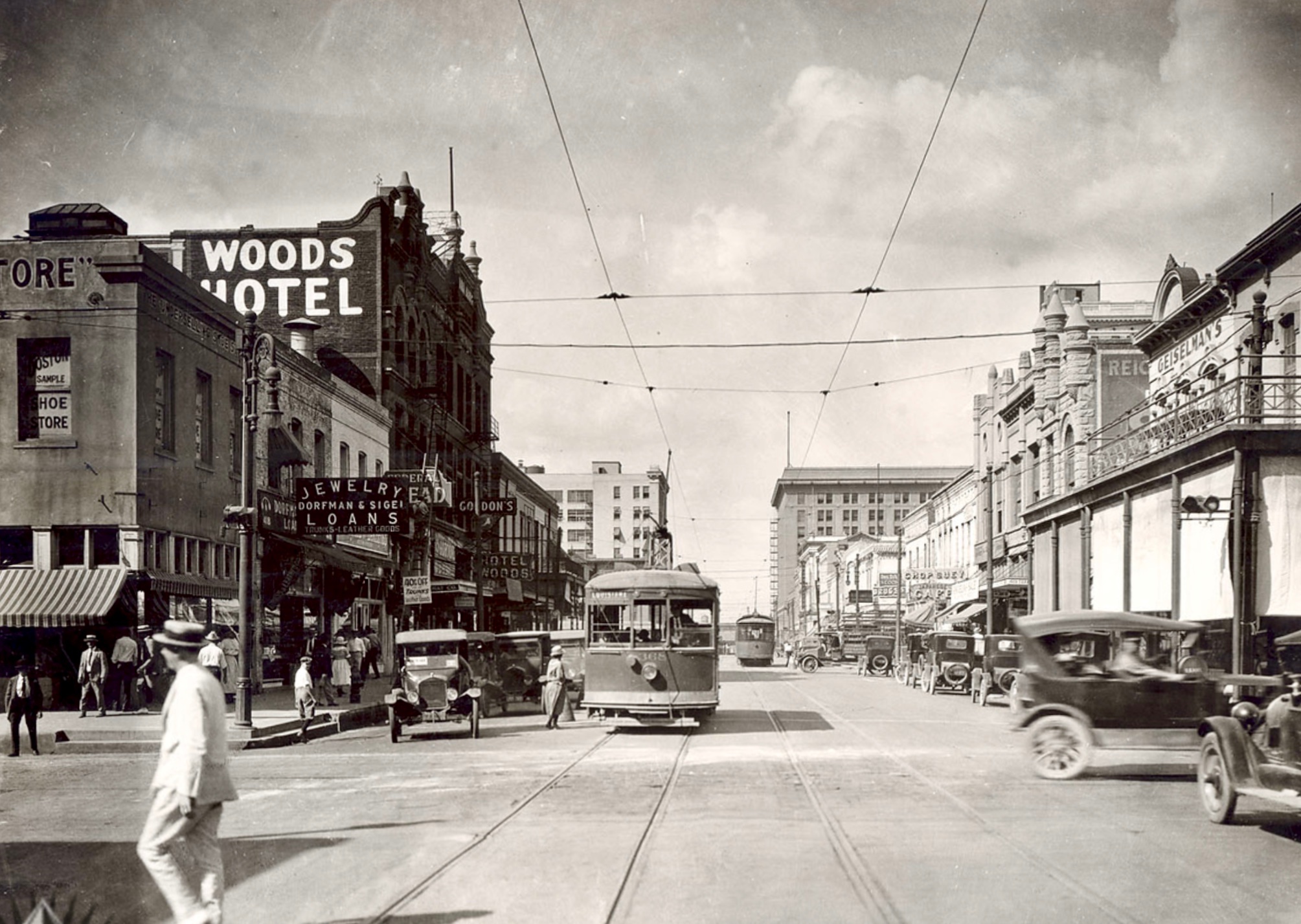 The very first photo showing the Milby Hotel is Houston, though that specific building hasn't survived. The hotel on the right is still standing.