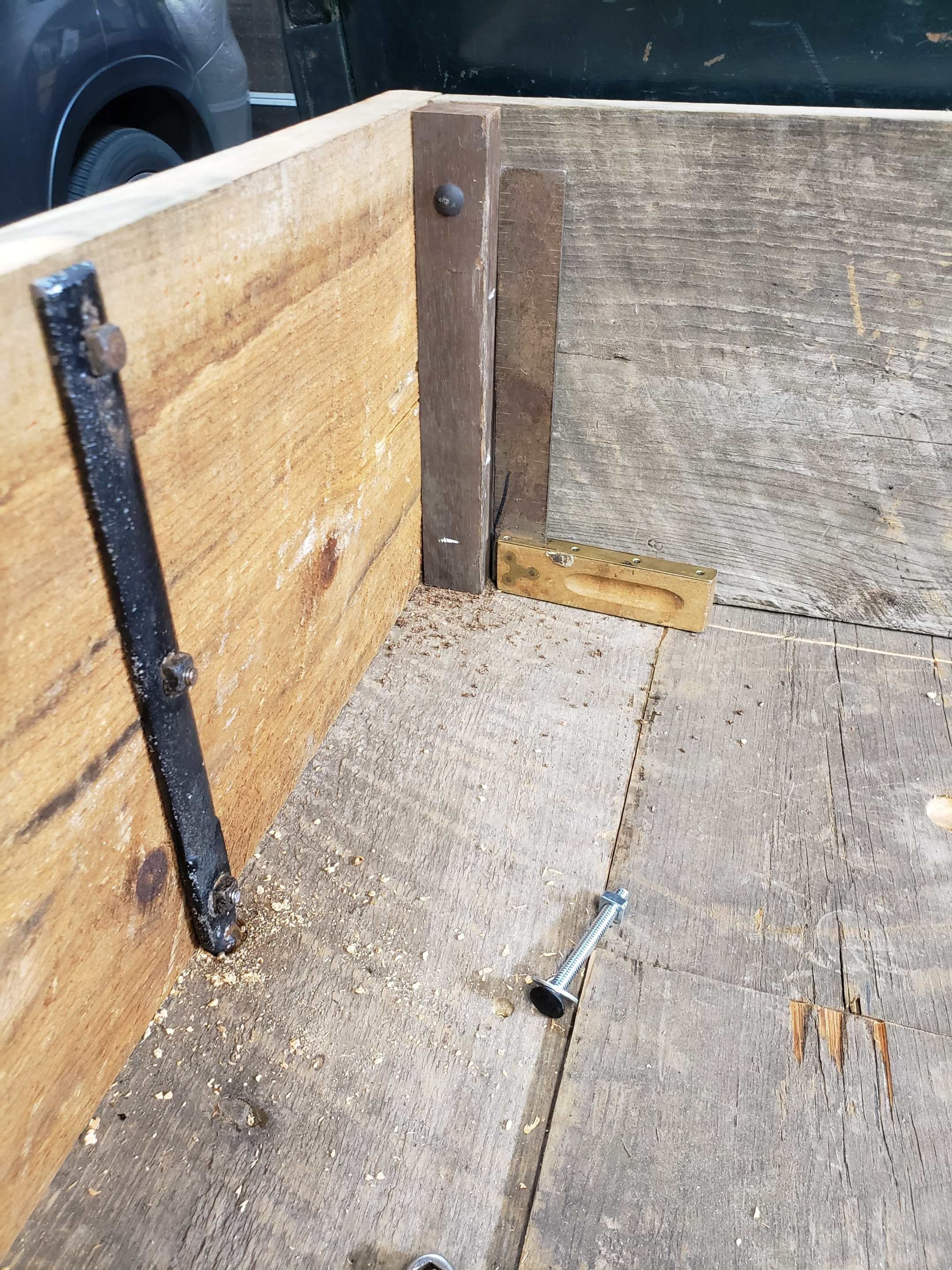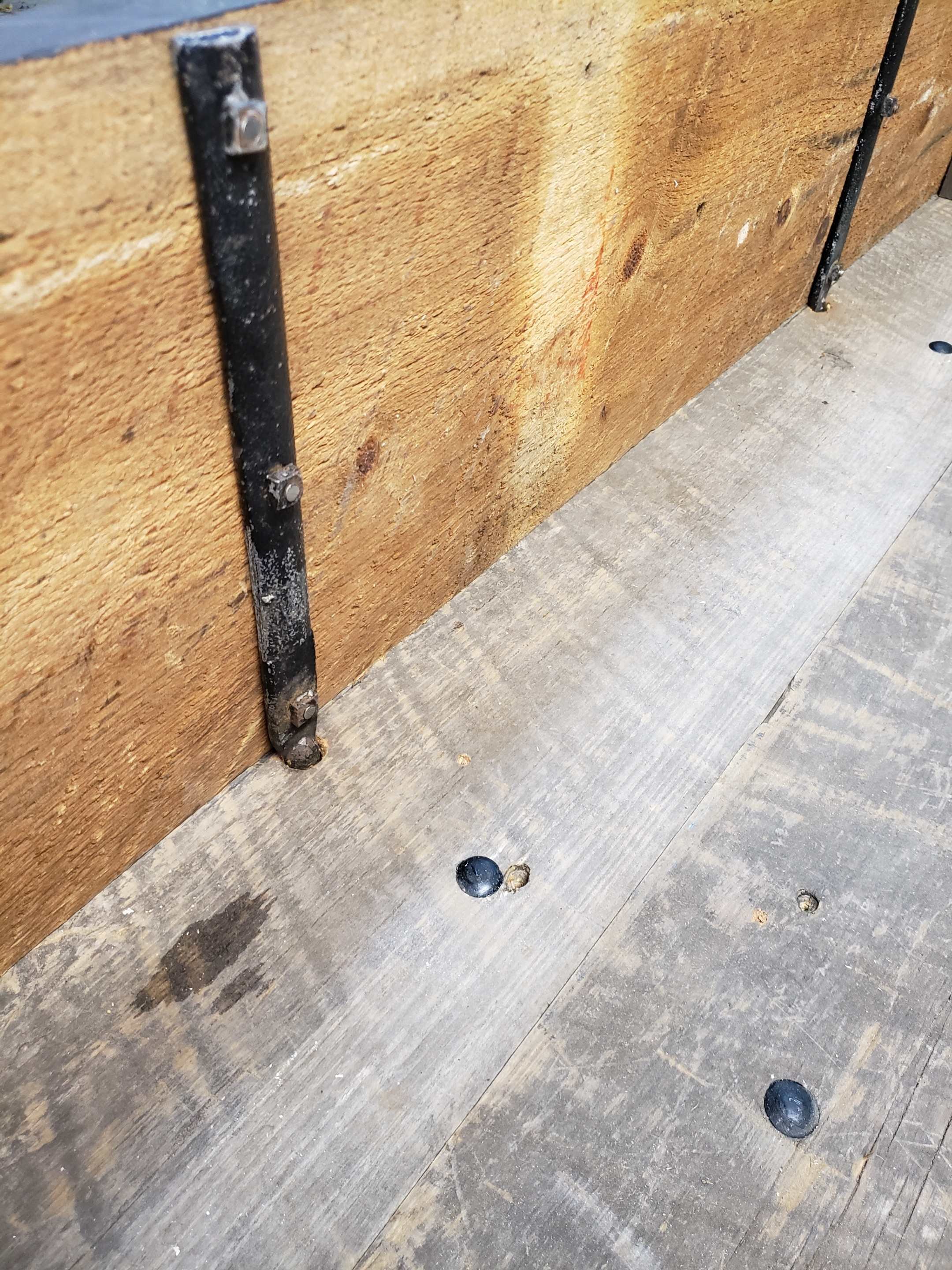 The protective steel straps will be fastened to the top edge of all the side boards, back and tailgate with steel slotted screws. Very hard to find in our parts on the shelf and so I need to order them from Fastenall.