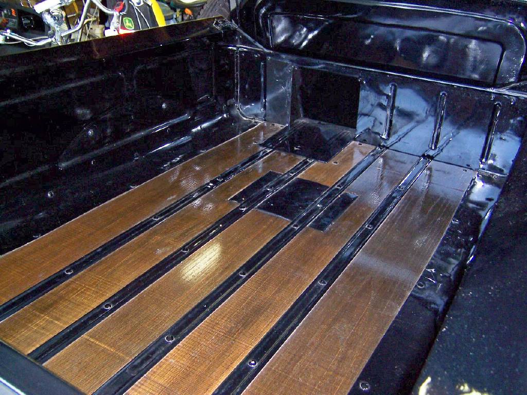 I'm about brain dead working with issues associated with my 26 T pickup bed. I noticed today that it appears, when all assembled, that the crossmember relief hole will not be centered over the crossmember. Is that just the way it is or am I missing something? The photo shows a piece of the flooring laid in the bed. The aft edge of the relief hole is at 29 inches as shown on another post. The string shown is tied across the bed tied to the mounting holes that will match up with the center of the rear crossmember. You can see where the center of the crossmember will line up. Is this just where it's going to end up located?