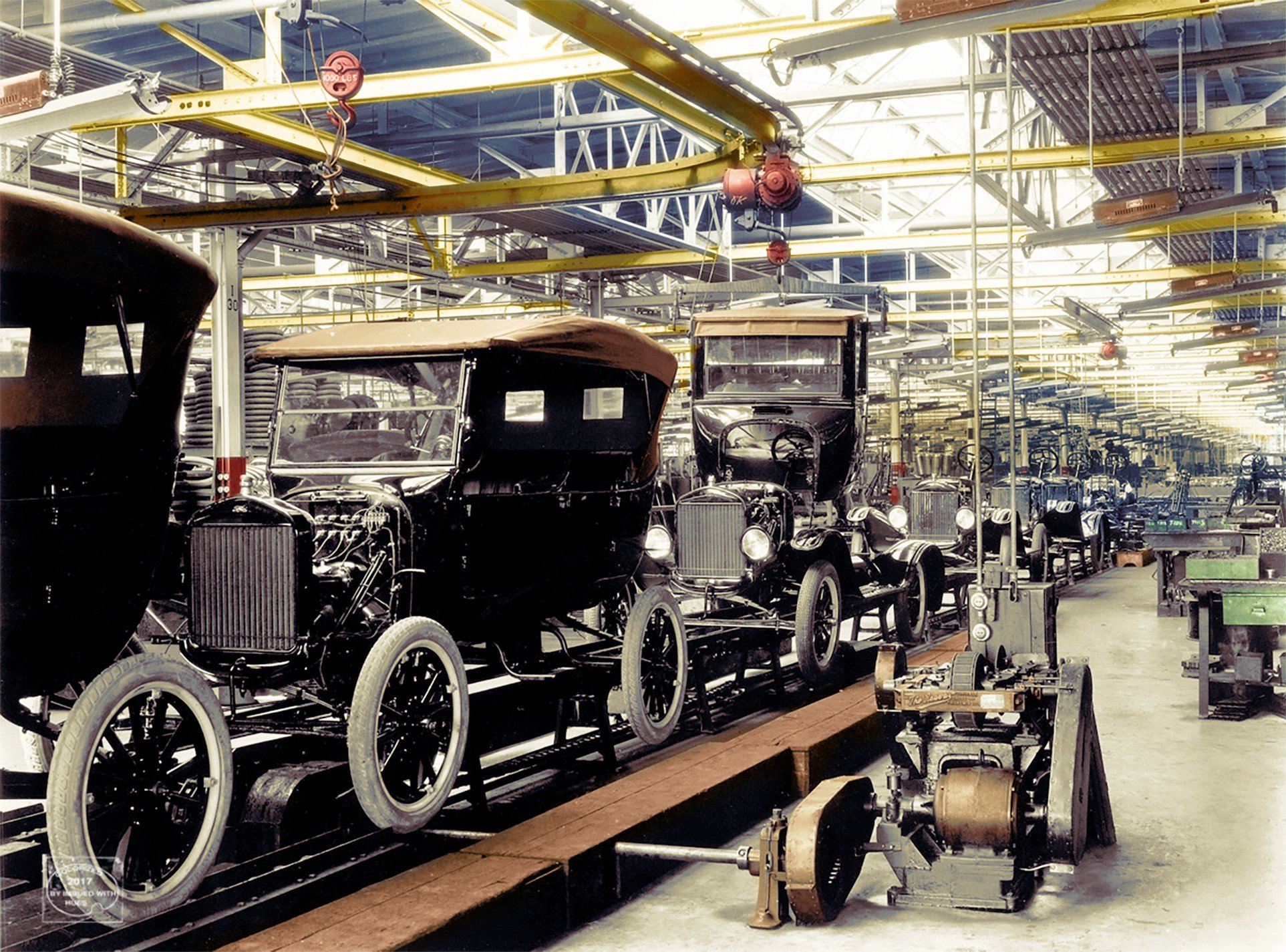 Nice. Is that electric motor to the right of the assembly line the power source for moving the conveyor? I’ll bet that place was loud. Like in the White Star shipyards where the Titanic was built, which was very loud, the Ford foremen and supervisors probably used whistles to get the workers attention and had to yell to be heard. Jim Patrick