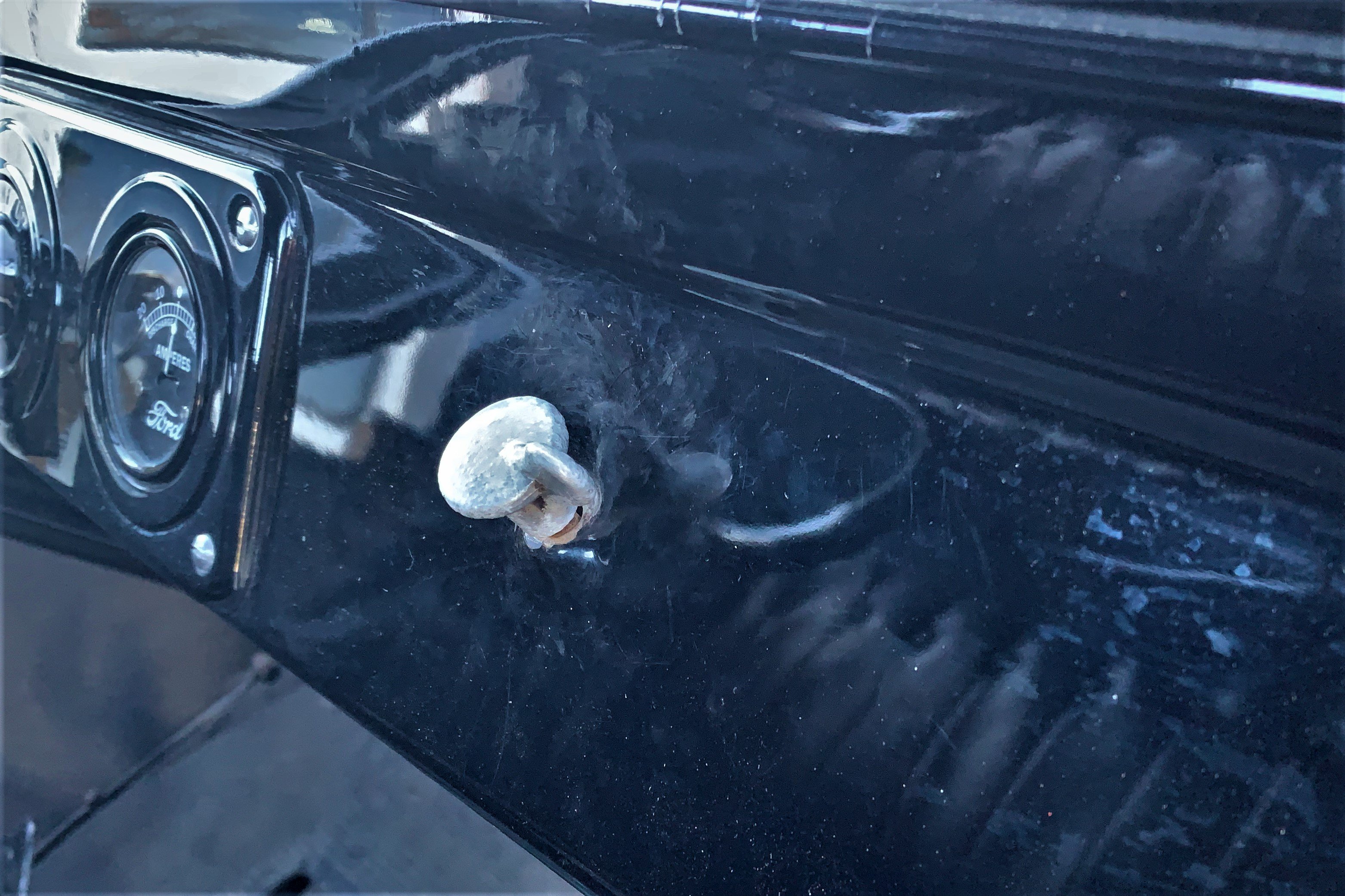 The upper nut for the oval head nickel plated screw is a square nut with lockwasher, as that one is rather easy to reach.