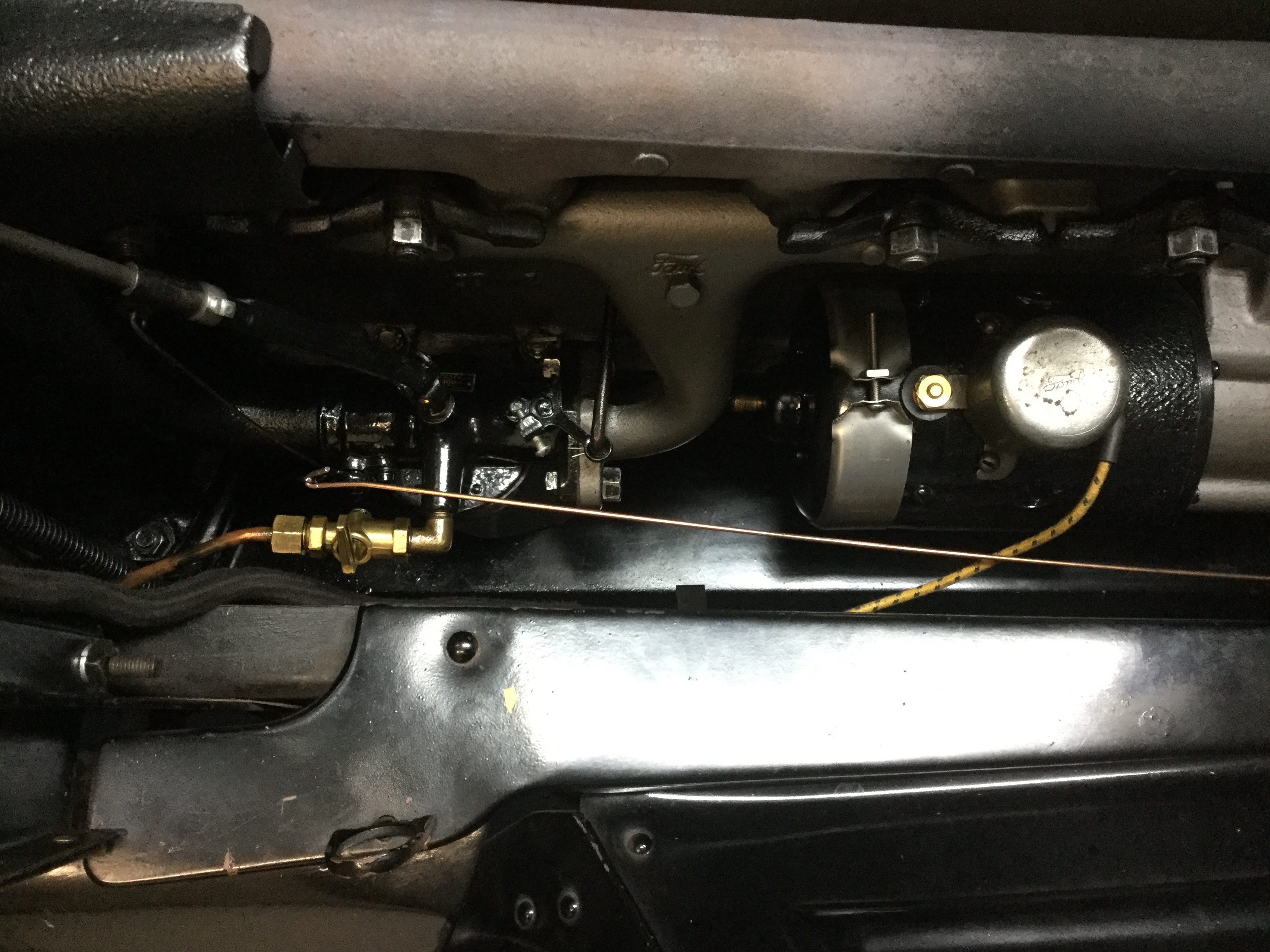 That said, my barn find car still has them on both sides. That they are still there and not all bent up, is another sign of the sheltered life she has led. the RH one has a 1/2" thick layer of accumulated crud all over it. I had to dig my way through it to access the carburetor drain when bringing her back to life.