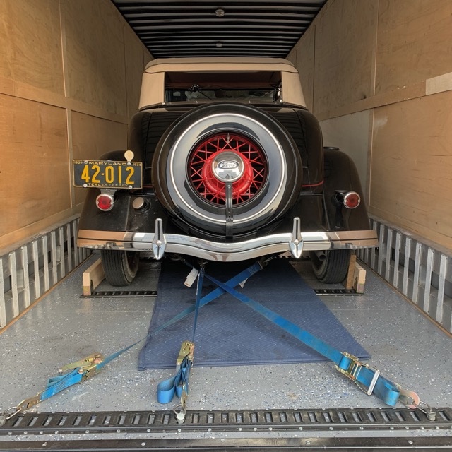 We have no problem securing the rear of the T to the rear of the trailer. We are looking for an easy way to secure the front without having to squeeze pass the right front fender into about 1ft of floor space. I don’t think an additional front door is in his future, although it would solve the problem, and I don’t want to rely on the winch to hold the car from moving backwards. A couple of saddles for the front wheels would work but would make it hard to unload. He plans on screwing 2X4s to the floor as guides for the wheels.