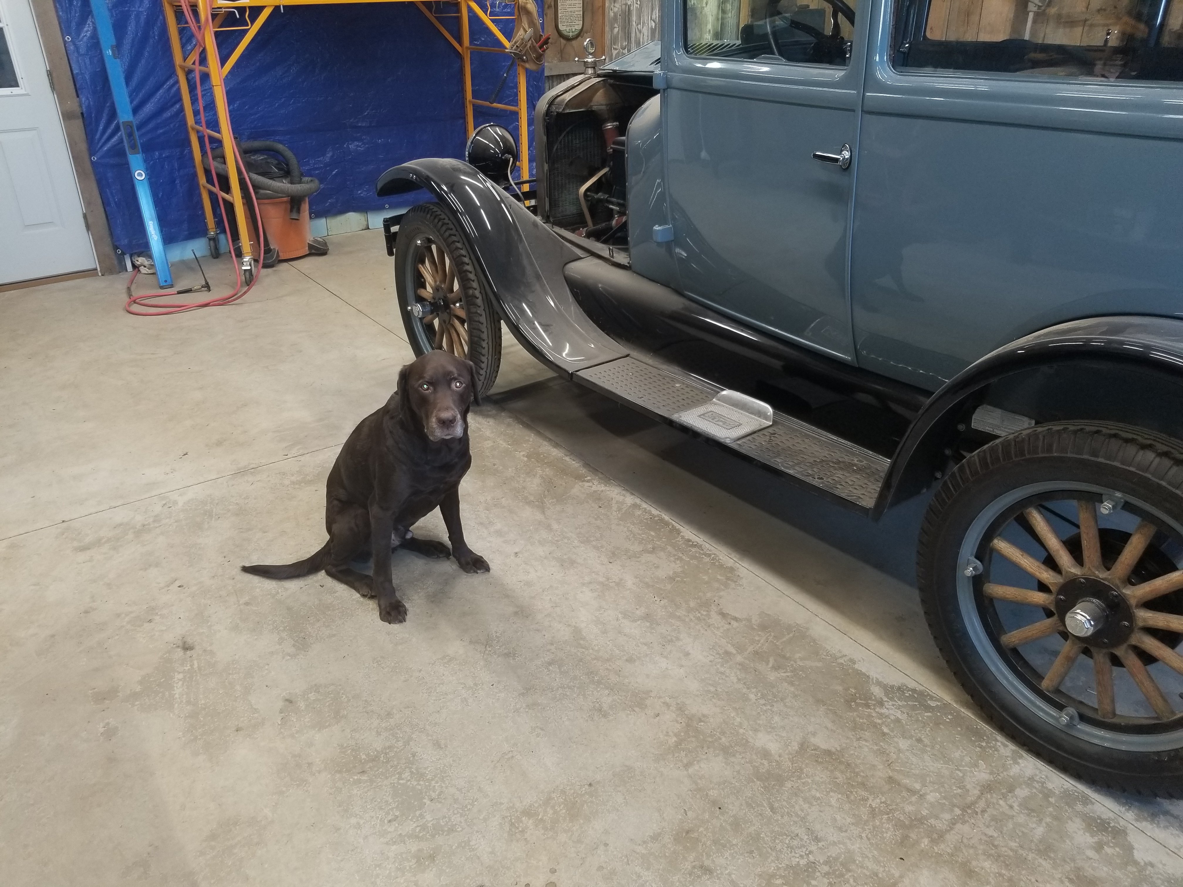 Balto is a rescue husky-laborador mix with one blue eye and the other half blue half golden. He is always ready for a ride, loves it, and to lend a paw to help out in the garage. If he could drive the T touring he would. Scouts honor.