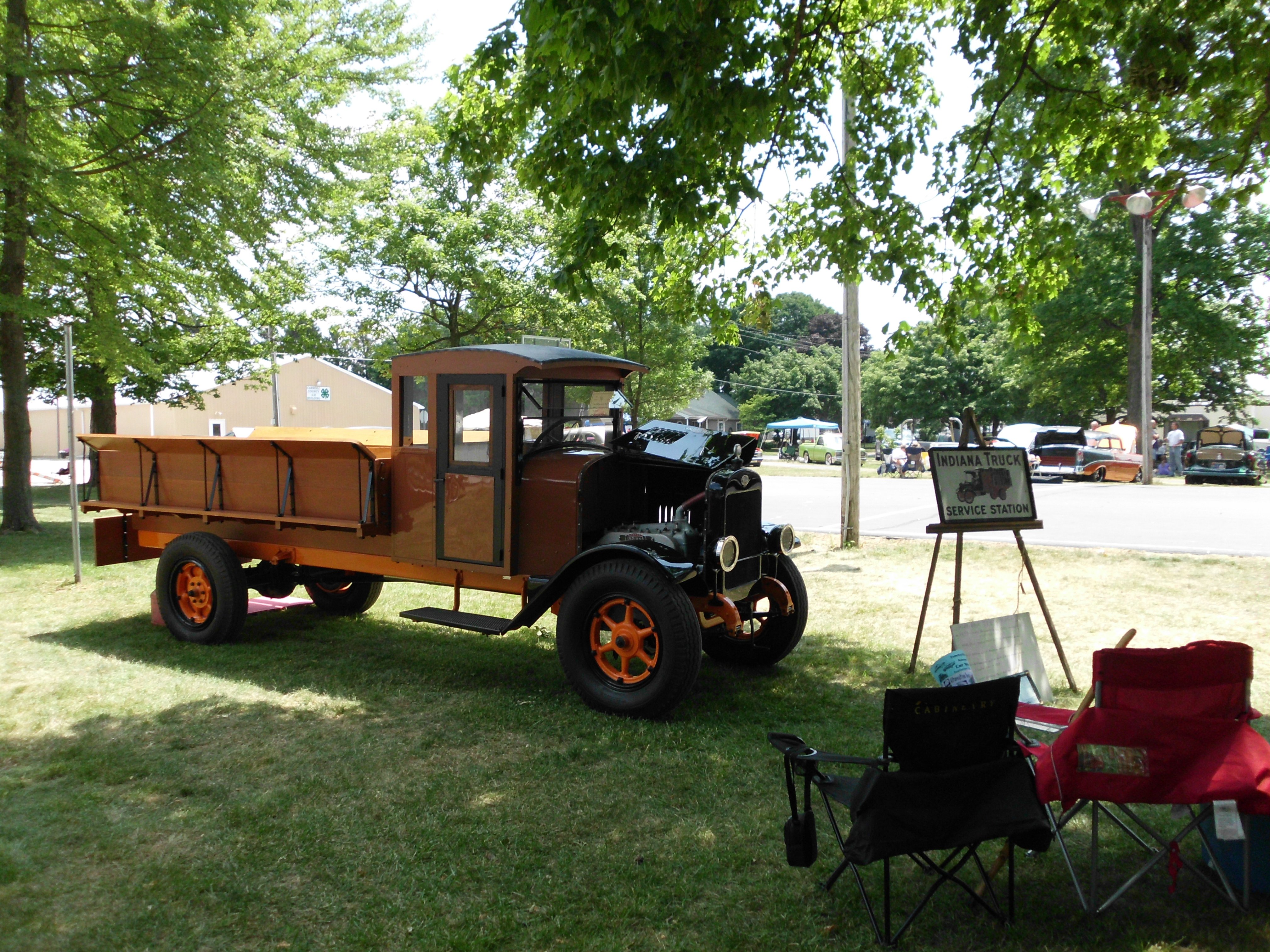 My 1925 Indiana Truck found in the loft of a barn when I was 16. I only found the wood cab and sheet metal for the body and later got the rear half of the frame from the woods in the next county where it had sat for years. Took me over 20 years just to find part of a frame from another Indiana that I welded to the rear section I had so I could restore this truck.