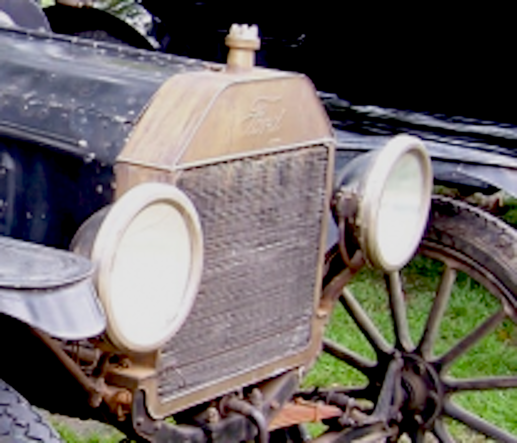 The early folding top couplet is quite interesting. With the acetylene gas headlamps, it is not a standard production car. It could even be one of the very few prototypes built summer of 1914. Or, while not very common, there are enough 1915/'16 and even black radiator 1917 models with gas lamps to know that while the factory did not produce them that way, a lot of people had them refitted. Although the factory usually did not authorize such things, it is believed that a lot of dealers facing the prospect of losing a customer, would install old model gas lamps on new cars for a few extra dollars. It must be remembered that people are funny creatures. They like things that are familiar. They like and trust what they are used to. Gas and oil lamps had been around for many many years. Those new-fangled electric things weren't familiar, or to be trusted yet in 1915 (at least for a lot of people).