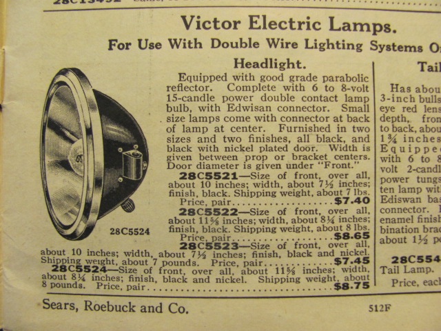 The example photo, if you zoom in on the lamps shows the rims with flat top edge and slight bevel side edges, very much like these accessory fork lamps. My guess is that well preserved Ford has accessory elec. fork lamps.