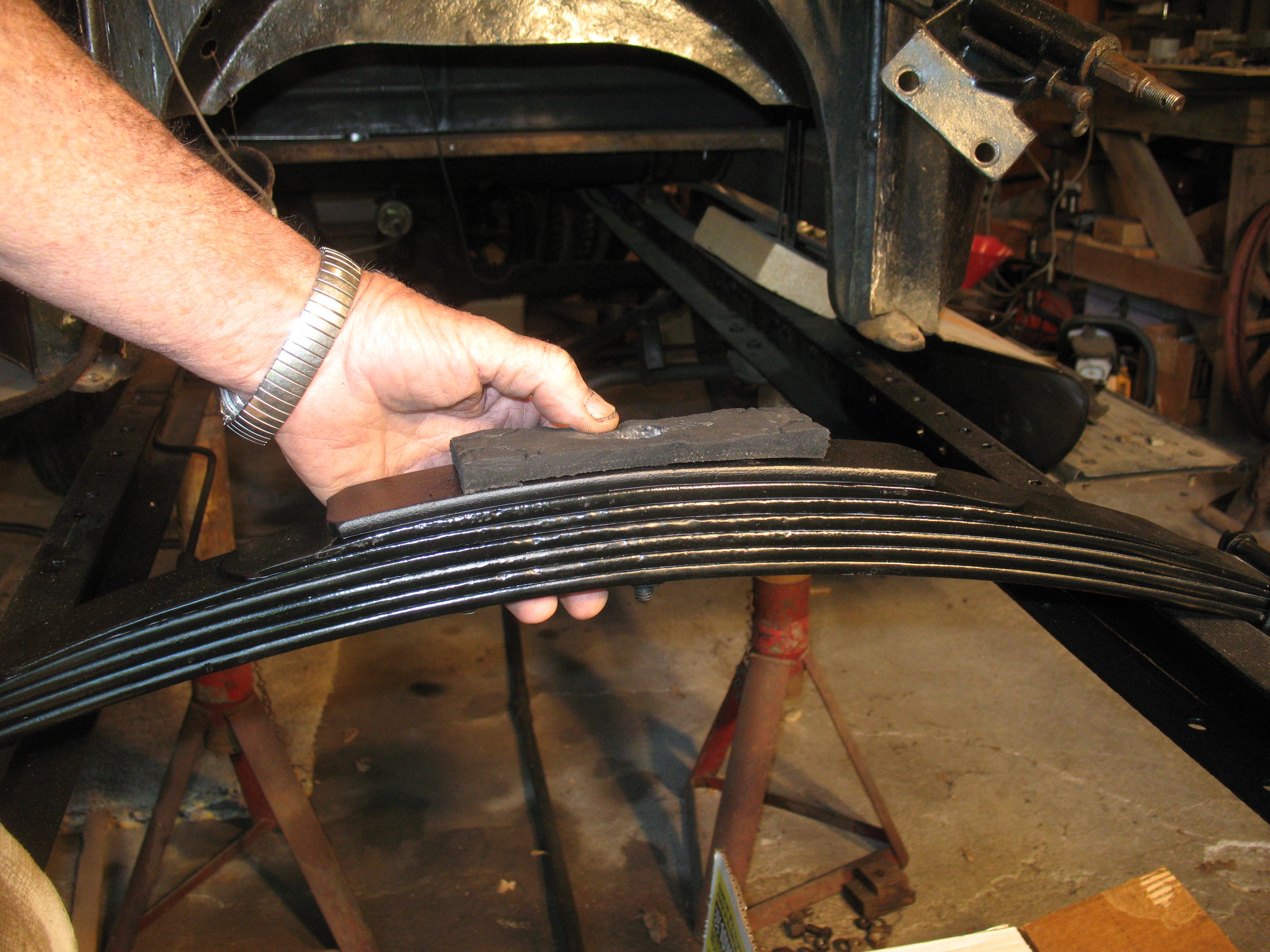 3 was there a piece of metal on the top of the crossmember (top plate?) which covered the holes? I've seen some shots of crossmembers which "seem" to have a piece of metal there; and there are indications of the edges wearing into the cross member. This front end has 11 springs (don't know why), but maybe the thickness was the reason for removing the "top plate"