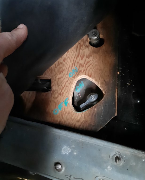 Bill Coyle--I have the same idea. I am looking at a cutoff switch that has a higher rise to the switch. I think I can then make a smaller hole in the floor board and have it look like another starter switch. I have a switch like you have pictured but the other switch would rise to the level of the floor. The only reservation is whether the switch is durable enough. The one you show is certainly heavy enough. I'm looking to buy the other to see if it will work. Thanks everyone for your interest, Dick C.