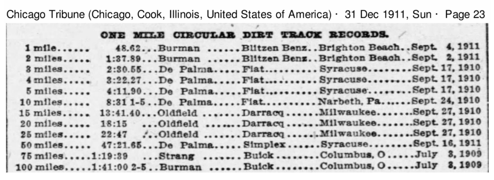 And the Benz wasn't just a straight away speed merchant. In September the big Benz set the one mile circular dirt track world record: