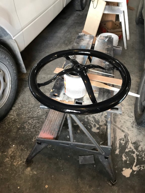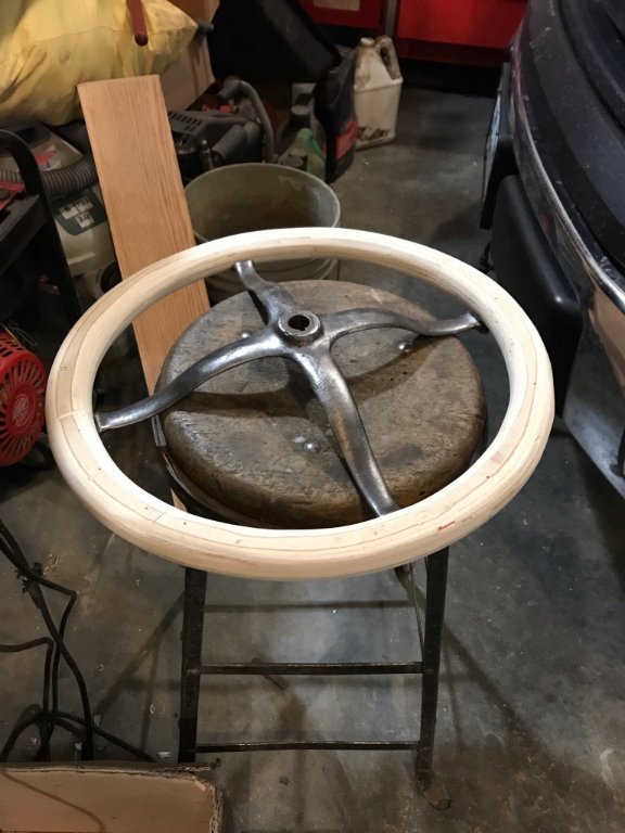 Finished the steering wheel. Turned out pretty good and cost me nothing but time and materials I had in the garage already.