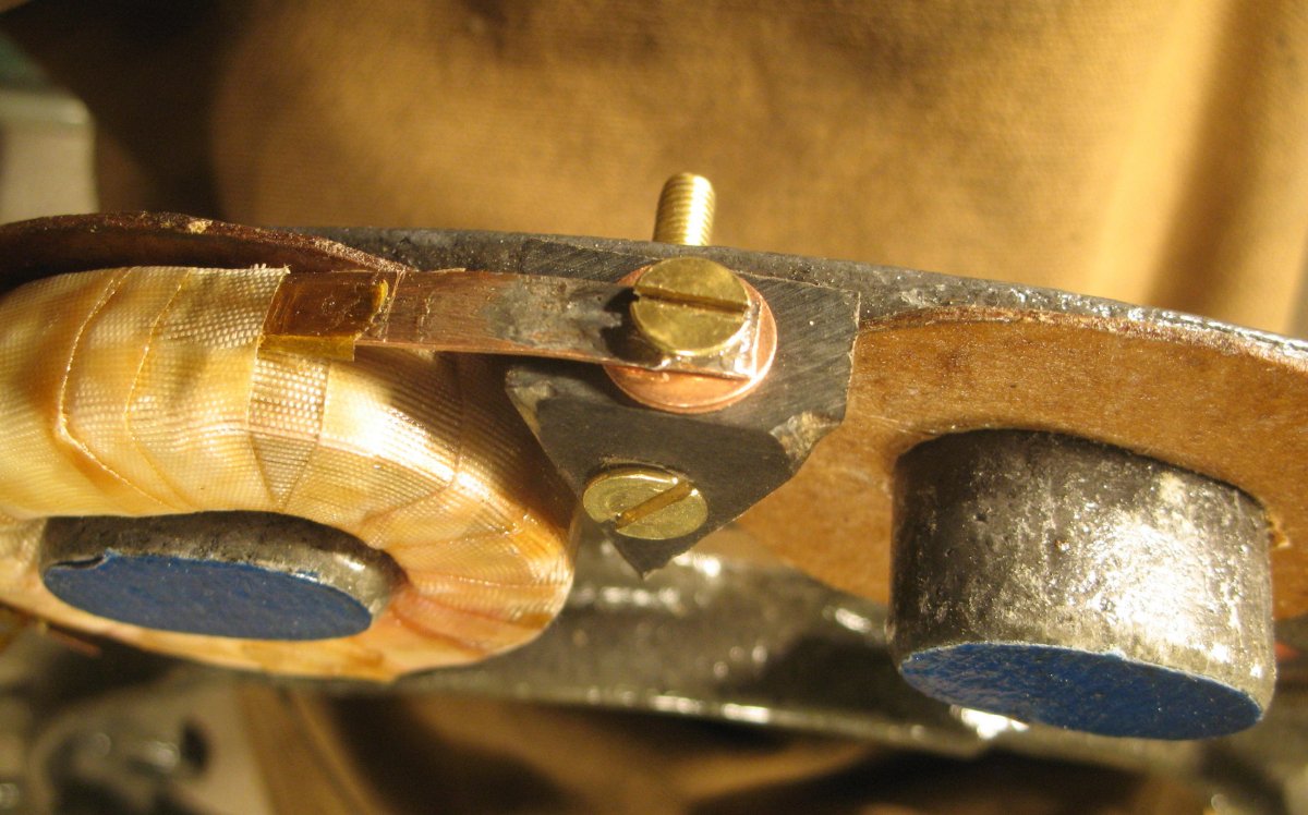 Today I installed the contact on the mag ring. Not having an odd size long rivet like the original, I put it on with a machine screw. I'll put a nut on the back, trim off most of the screw, and solder the nut to keep it in place. A solder blob will go over the top screw for the mag post to stab. Can you believe that little copper washer cost 57¢? Amazing.