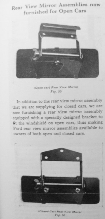 I had not seen the Australian Parts Catalog before and I looked for something specific, the rear view mirror. In the American catalogs it is part 18259X and in the Australian it is listed as 18523X. I had a friend that had a RHD Model T more than 50 years ago and for some reason, the one thing that I remember was that the mirror was different. Of all the things that I remembered or noticed or just stuck with me all those years, the rear view mirror. The "slide" for adjusting the view was on the opposite side as the LHD (as it should be or the mirror would be pretty useless):
