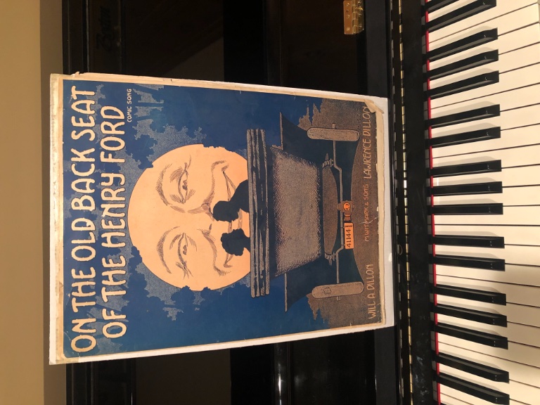 I’ve original sheet music for “On the Old Back Seat of the Henry Ford”. Still gets its original use from time to time; here it is on my piano.
