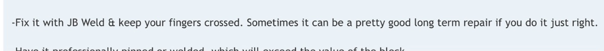 -Find a good replacement block, sometimes only a $200-$300 buy or maybe much less if you’re very fortunate.