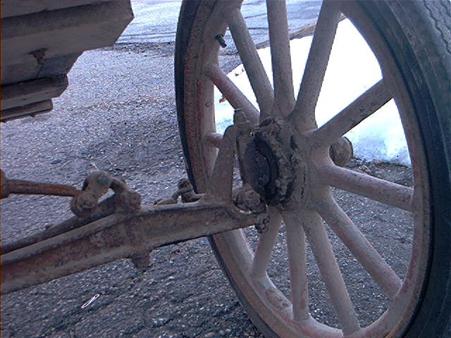 Darn, I love that trailer (complete with round felloe wheels) - the patina is great, and I'd say that once you stabilize the bed (maybe blacksmithed round stock from the "fron motor mount" to the end of the bed (wonder why the builder never did that??) it looks like it was built to m-o-o-o-o-ve some stock, but that would make me b-a-a-a-a-d... (Sorry if I'm sounding sheepish)