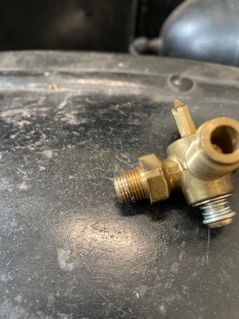 The tap in the photo does not look tapered to my eye, which begs a question. The thread on the fuel tap is tapered, so it would bind on the thread in the carb even if the carb thread was straight, but the engagement would be narrow. If the thread in the carb was also tapered, the engagement would be made through the length of the thread, making a better seal. Does anyone else see a straight tap in the photo? If it is straight, grinding some off the end would be fruitless.
