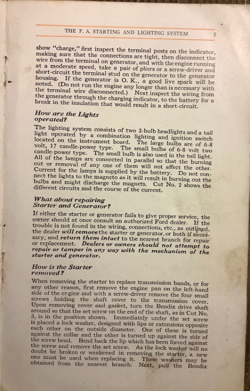 Fred Allison at Ford electrical engineering department worked with Liberty Electric Company in the initial design and implementation of FA Liberty Starting and Lighting System for the Model T. Most of these early units had minor differences that are not fully documented in Fords engineering prints and Record of Change change system.