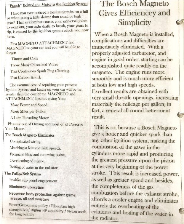 • a. Bosch Magneto for Ford cars (justification for building the Bosch Pulley Belt Ignition System (read it online))