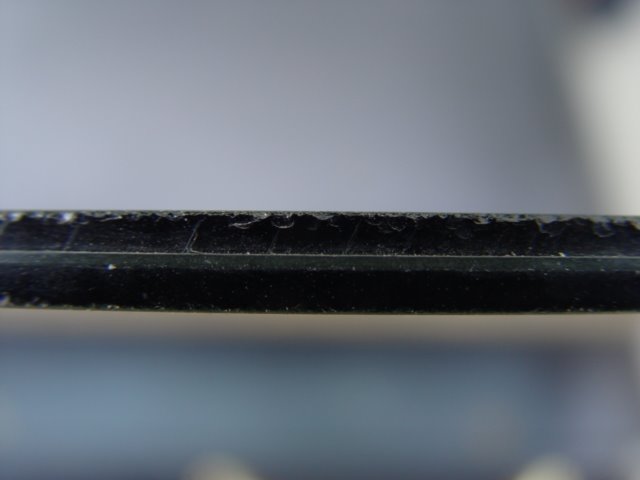 Cracked, scratched or broken glass.