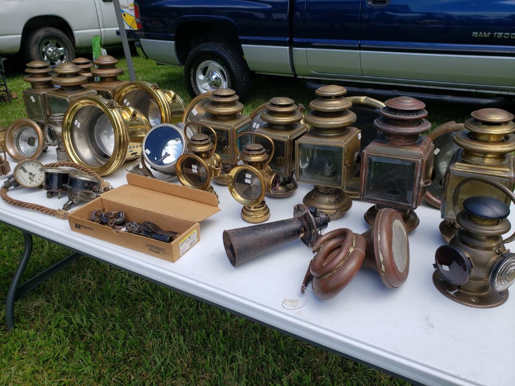Thanks for posting! The large headlights behind the 3 speedometers on the table with all the brass sidelights may be of interest to me. If you know the vendor, could you please ask him to contact me? Cheers, Bill