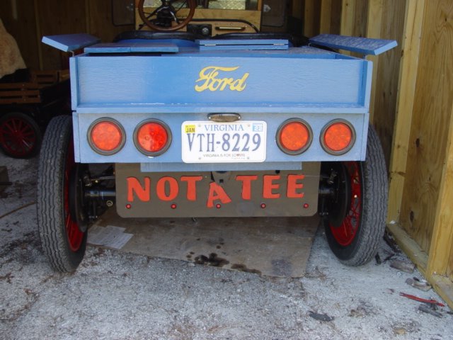 You are 100% correct except in assuming I insist that my speedster is a Model T. It is built from a Model T, has a Model T engine block, Model T transmission, Model T rear with Ruckstell, Model T radiator, Model T title and registration, BUT I do not consider it a Model T. The lettering on the back "NOT-A-TEE" is out of respect for those who spend years researching history and building correct cars. I admire and respect those people, but I am not one of them.