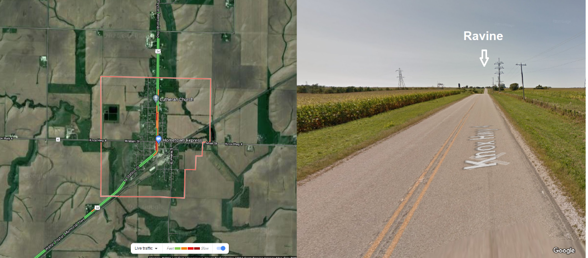 Thought I'd shed some light on the terrain question. Altona is a village in Knox County, Illinois. The population was 531 at the 2010 census. In the mid-west the land is mostly flat with ravines (we go down hill before we go up hill). The steep hills are around the major river valleys. The dark green areas outside the town are the ravines, most are relatively shallow. There aren't many roads outside of the town, but it looks like getting to a "country road" may require a bit of highway driving to get to one. Looking at the map detail, the road (S. Station St) goes to the Cemetery and continues on to what looks like a nice practice area if its a blacktop road vs macadam (tar&gravel).