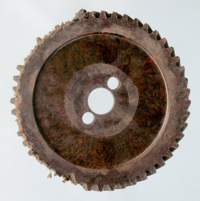 You will note the mottled surface of the stripped gear shown above, that is a pretty good indicator of being a macerated gear. Laminated gears generally have an even colored surface and may show signs of the fabric weave in less compressed areas.