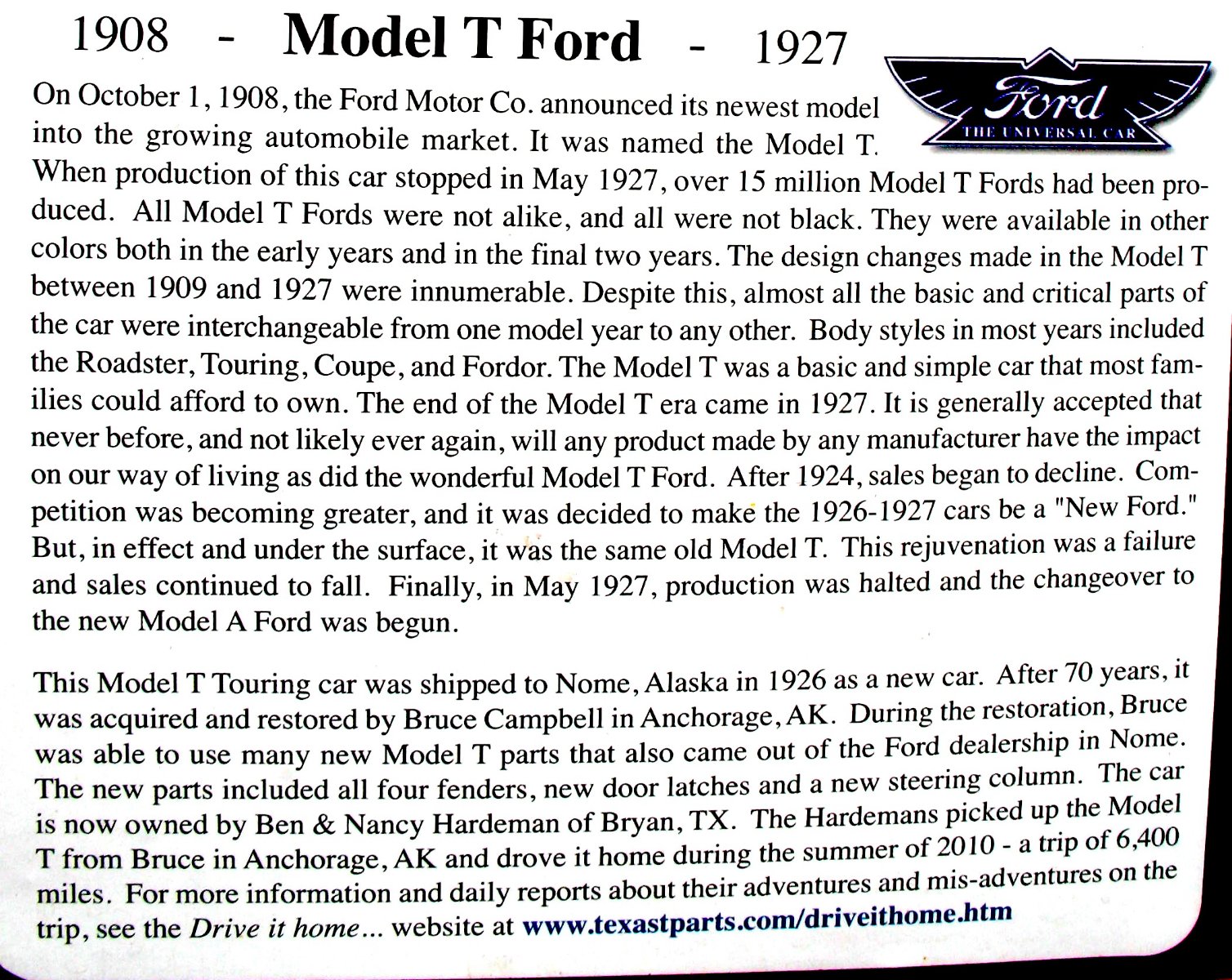 - * REQUIRED* Type and Year of Model Ts owned: 1910 touring