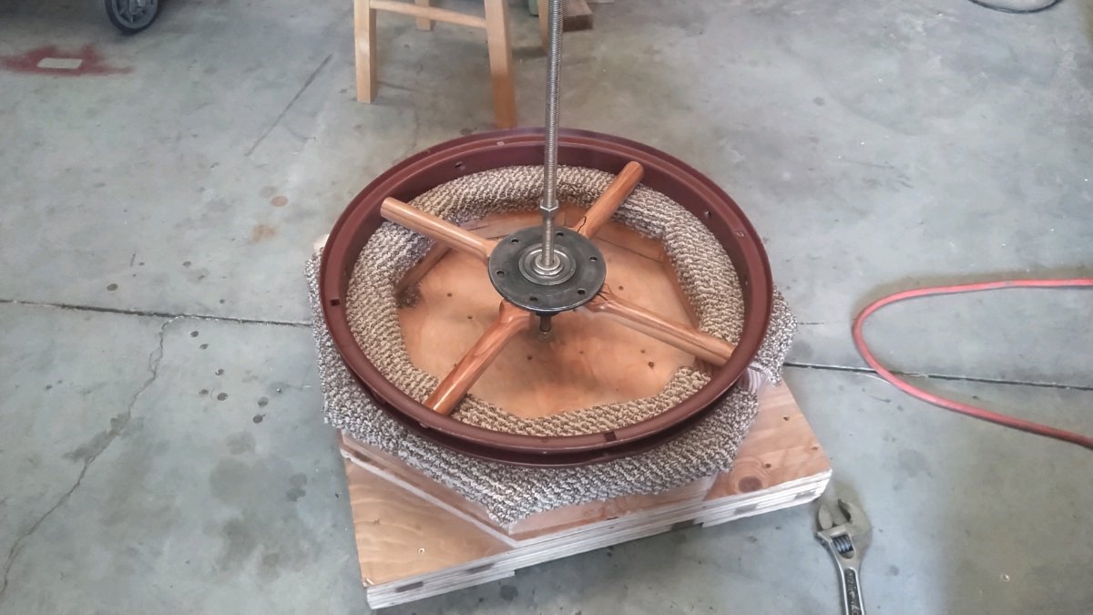 I have an old Delta Radial Arm Saw that I use as a 'Radial Arm Mill' for Plastic things I cut at work.. I'm thinking I'll just have to make a Bigger Diameter Turn Table, and Increase the Center Distance to get the Assembled Feloe and Spokes/Hub under it.. So I can Bore the Hub Hole, and Trim the Hub Surface Flat for the Hub..