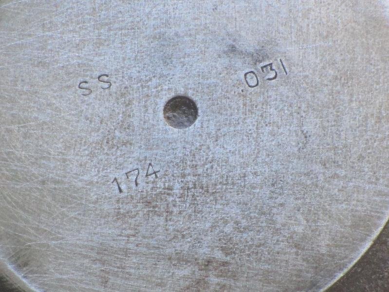 O.K. so far. Problem identified, solution at hand. Right? Maybe. When I pulled out the rods with cast iron pistons, the attached photos show what I found. Are these original Model T pistons? They don't match anything I have pulled out Model T engines. Three top rings (1/4") width) AND one ring almost at the bottom of the piston skirt with a groove beneath that full of holes? The markings on the piston tops are also a mystery to me, as no typical Ford size stamp appears that I am familiar with. Could the "031" be the oversize? Kind of odd, if that's the case. .031"??? All four pistons have this same odd number. The other stampings on each piston top are "SS" and "174". I don't have a clue what that means. Some kind of secret society code? The pistons are secured to the rods with usual bolt.