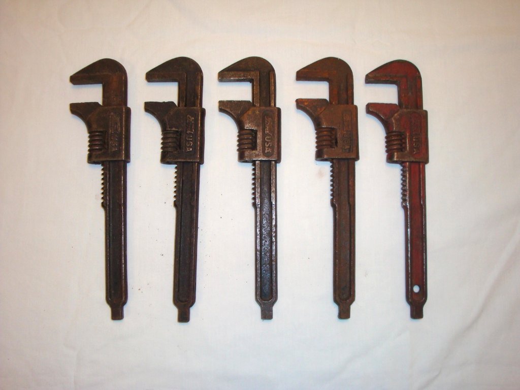 The later Ford script adjustable wrenches have a square boss on the end of the handle for use with the Model T and Model A differential plug.