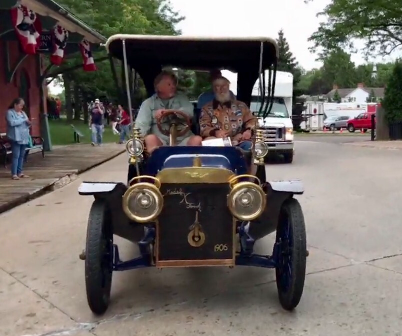 Yes, it's the 1906 Kim, Dean Yoder and I callaborated on. Dean got it up and running, and he and Kim took it through the New London to New Brighton tour and Old Car Festival. The motor and drive train are in great shape with an older reproduction body. Bruce Van Sloun restored the original 1906 Holley Magneto, making this the only running 06 with an original Holley magneto.