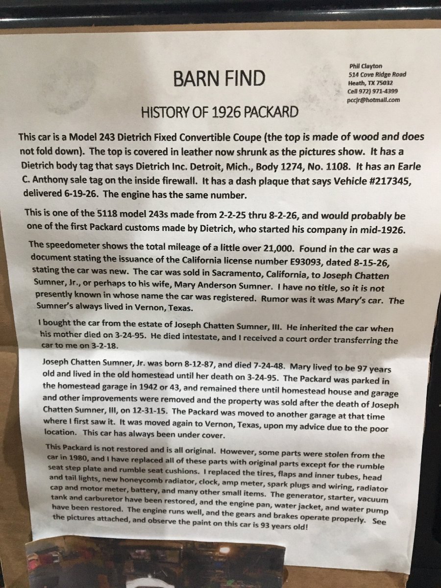 Terry Bond, I agree it's a very nice Packard and the way you like to find them.