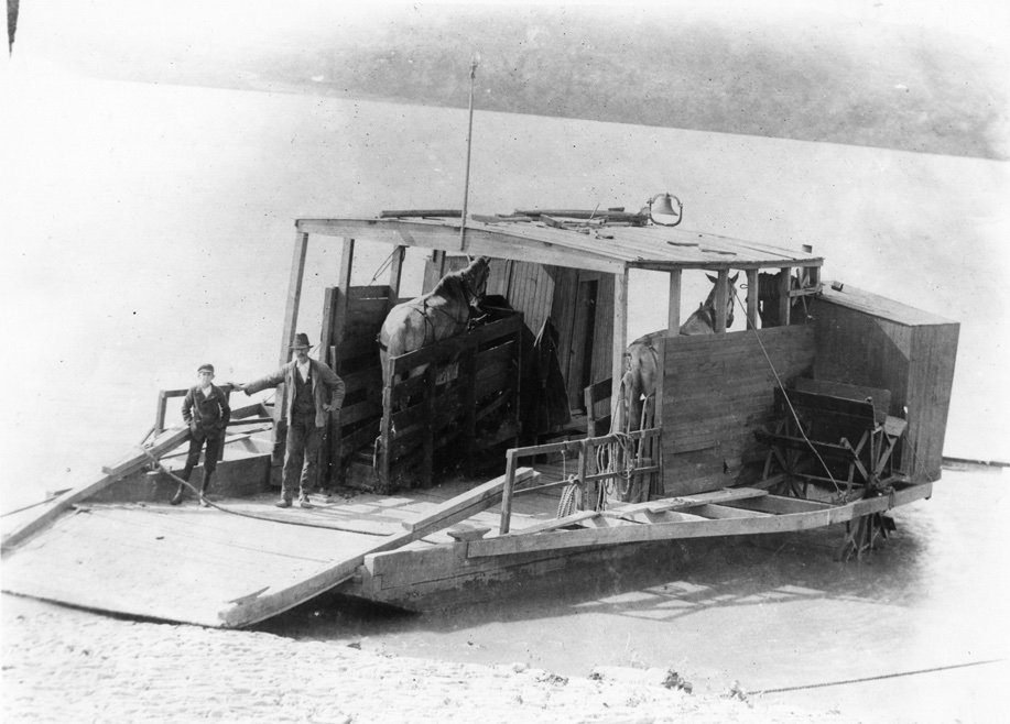 Great and interesting photo of a two Lung two horsepower vehicular ferry.