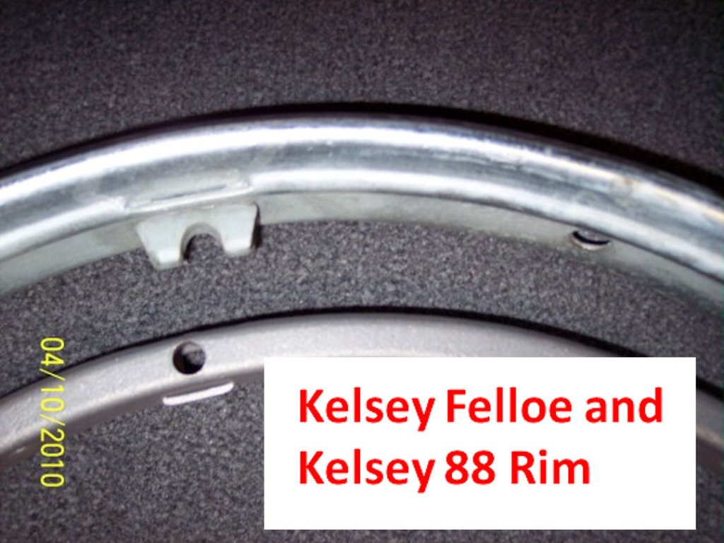 Kelsey loose lug rims wedge onto the outer lip of the felloe. It is this wedging effect whicha llows the transmission of driving force from the wheel to the rim. If the lug was to be hard against the felloe, there may well be no tension in the assembly to maintain the wedging effect. With worn feet on the lug, worn lands on the rim, and lgs hard against the felloe, the rim cold well be loose on the wheel.