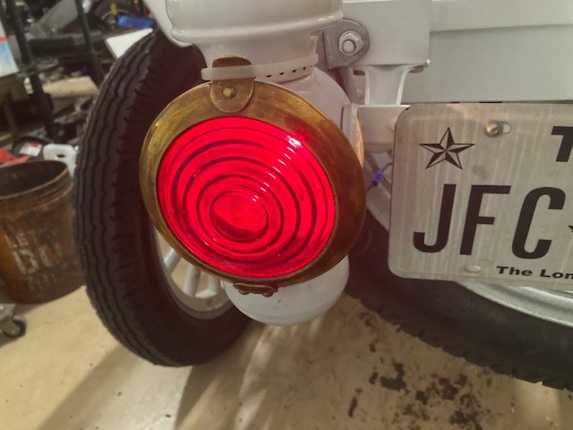Thanks JT couldn't have done it without you and the rest. Some more details today. Lame attempt at glamor photo. Fire extinguisher is mounted. Tail light works. Wearing all its brass bling now.