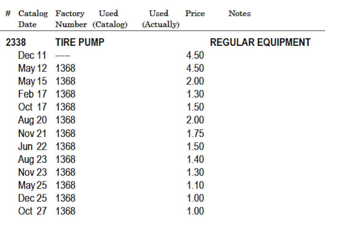 But according to the various prices over the years in the Parts Books, maybe the $2.00 plus prices reflect the dual pump? The lowest prices of $1.00 are the all steel tube pumps.