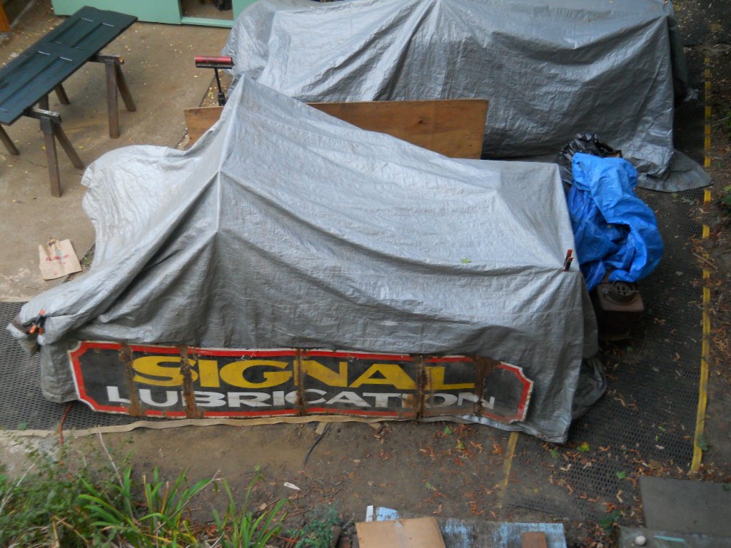 Garage/work space getting new door. Got to find a place for the sign, it's almost as long as the T.