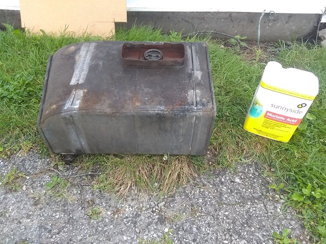 I got the fuel tank sealed tonight with POR15 tank sealer, interesting process as I've used the stuff before. I cleaned out the tank and gave it a Muriatic acid wash followed by a bunch of rinsing.