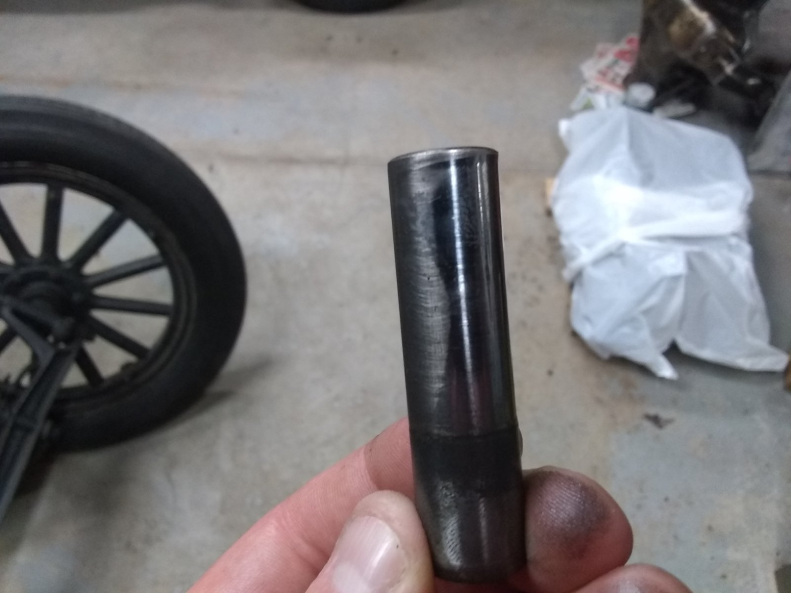 I'm waiting on a new steering shaft and some other things from Lang's so I'm not getting tons done but I have been picking away at stuff. I took the steering column apart as it was slop city. The throttle and spark rods were work as was the quadrant... I welded the rods and reshaped them but the quadrant was so bad I found a NOS one for a replacement. I also found this cool walnut wheel but the spider was too thick for the T column so I'm making a Ford part work. Plan is to make it a Fatman wheel.