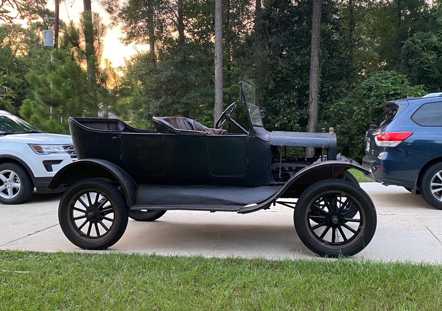So I contacted the lady and said that I hoped she got her asking price on her pretty couches but if she ever got to the point where she just needed them gone, I would come get them. I told her how I was needing the leather for my Model T project and I sent her a photo of the car. A few weeks later, she said they were in her driveway and I could come get them for free.
