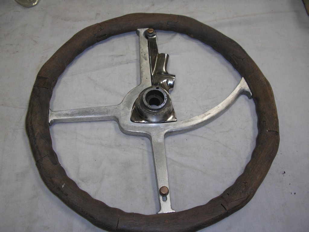 I picked this up at a swap meet today. I've never seen a wheel like this. Made by Stout's Manufacturing Co in New York. Anybody have any Information on these steering wheels? Any idea what year the column is? It has the early riveted case.