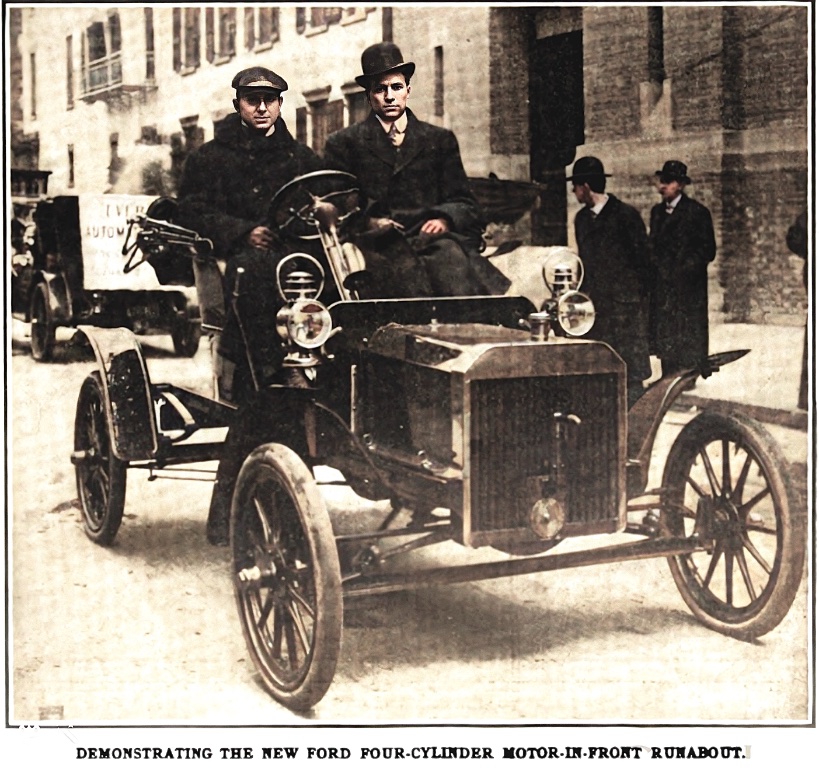 Another magazine photo. This was the only Model N demonstrator Ford had available at the early 1906 Auto Shows. Louis Block, future branch manager, is driving: