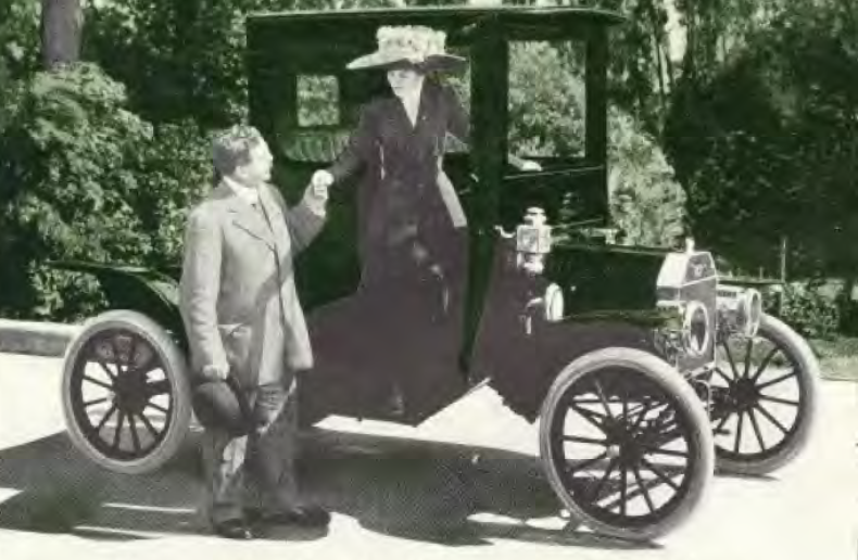 I found this photo to be very interesting. It was taken following a tornado in March 1913. The photo is of a clothing drive for those who lost their homes. This appears to me to be one of the 187 Coupes made in the 1910 model year. I blew up the image to show details. The radiator has a short neck but it also has the radiator support bar. I thought the bar and tall neck were added at the same time in mid-1910. Apparently, I was wrong. What do you see here? Oh, and those tires are SHOT!